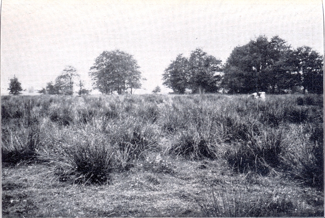 Typische Weide im Emsland um 1925 aus dem Archiv von Dr. Böckenhoff-Grewing. Der enorme Aufwuchs von Binsen sticht dem Betrachter von heute regelrecht ins Auge – weitgehend unverdaulich für Rinder. Erst nach dem Tiefpflügen solcher Flächen ab 1950 konnte auch hier ein Vielfaches an Energie als Futter eingesetzt werden.