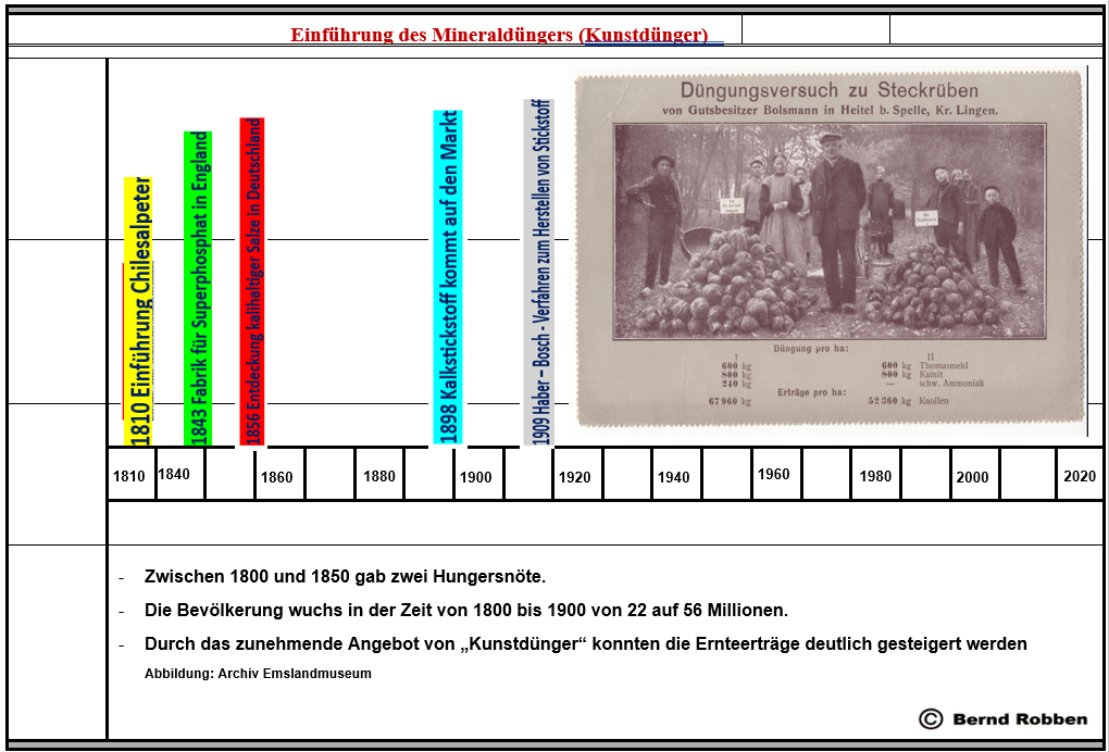 Erst die Einführung des Kunstdüngers und die Verbesserung beim Futteranbau konnten die Ernährungslage verbessern.