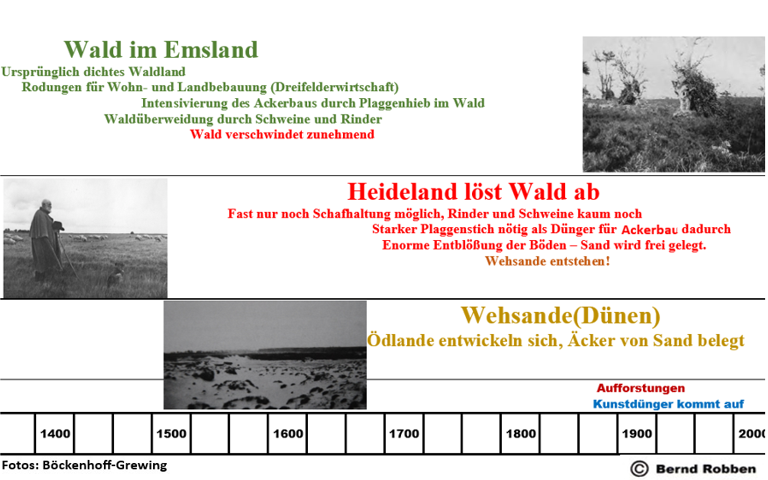 Schlimme Wehsandflächen entstanden, die zum Teil sogar die wenigen überlebenswichtigen Eschflächen überlagerten. Größere Teile des Emslandes glichen Wüstengebieten.