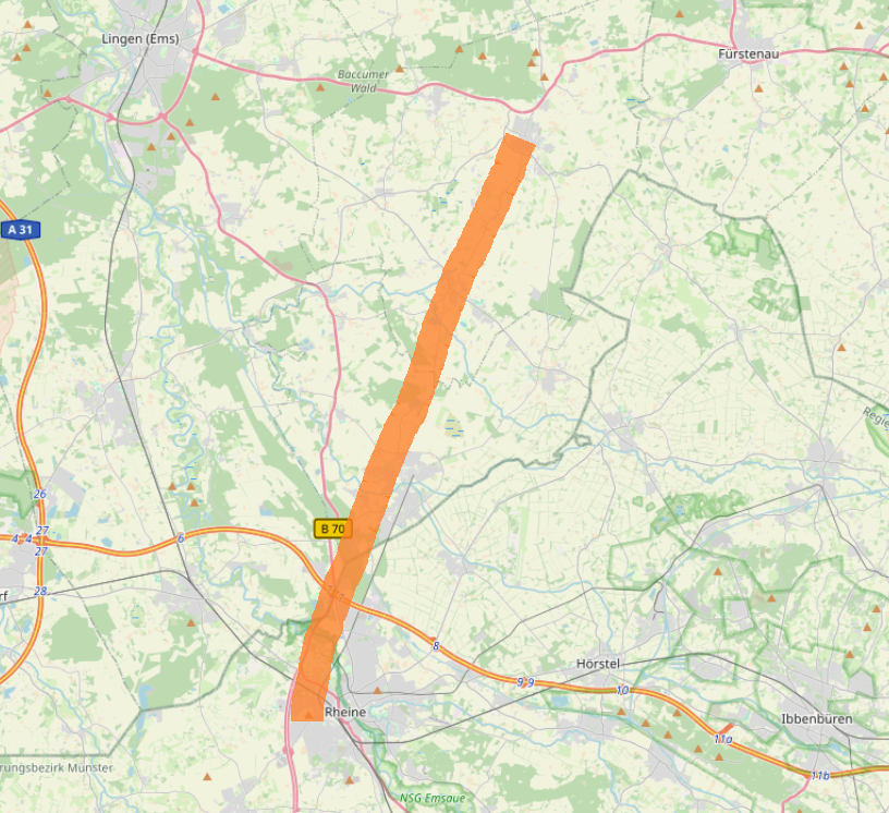 Auf einer Länge von 23 Kilometer des Streckenabschnitts Rheine bis Freren über Spelle sollte eine Schnellstrecke erprobt werden (Wikipedia).
