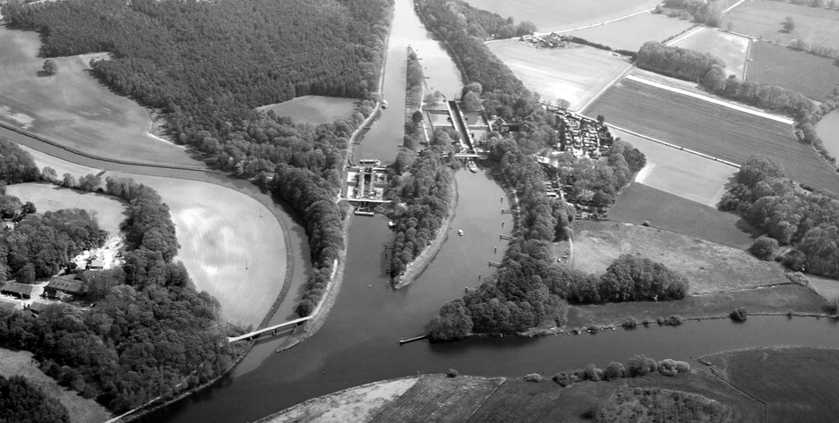 Dadurch entstand die endgültige Anbaufläche, in deren Mitte die neue größere Schleuse nun gebaut werden konnte.