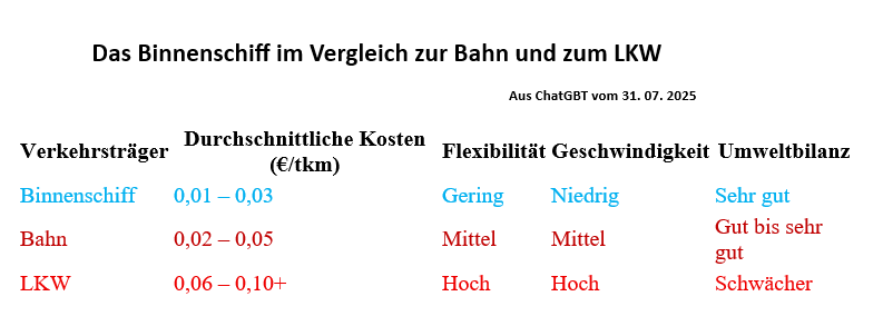 • Reduzierung umweltbelastender Umwege und LKW-Verkehr durch Kanalbefahrbarkeit für das Großmotorschiff