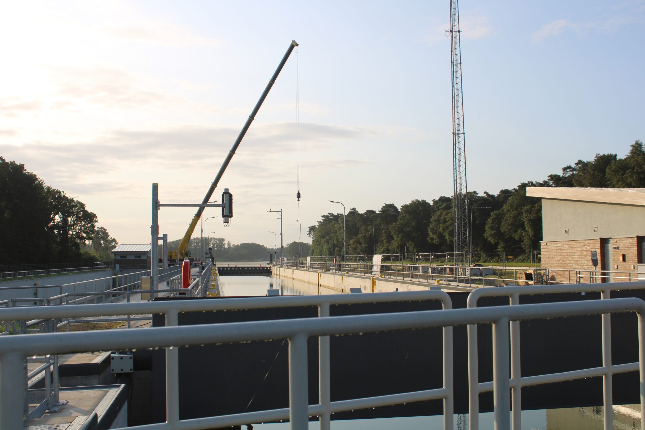 Der Ausbau der Schleuse ist nun weitgehend abgeschlossen. Die vorderen und hinteren Tore sind eingebaut und das Bauwerk kann geflutet werden.
