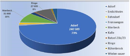 Bei der aktuellen Erdgasproduktion dominiert die Karbon-Lagerstätte Adorf die Produktion in der Region.