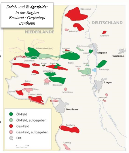 Förderstärkstes Erdölfeld der Region ist das Thermalfeld Emlichheim.