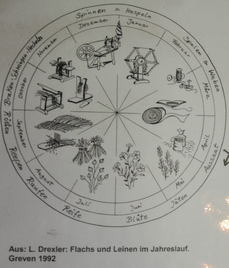 Etwa ab dem 100. Tag im Jahr wurde der Flachs auf dem Feld ausgesät, also etwa um den 10. April herum.