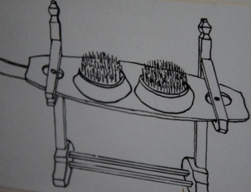 Da sie dann aber insgesamt immer noch zu dick waren, zog man sie durch den Hechel, das ist ein Kamm mit etwa 300 Spitzennadeln. Dort wurden nun die handlichen Flachsbündel durchgezogen.