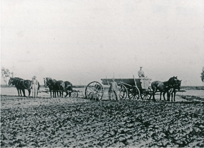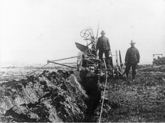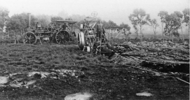 Danach wurde mit dampfkraftbetriebenen Lokomobilen der Boden aufgerissen und umgepflügt, sodass die in dieser Gegend häufig vorkommende Ortssteinschicht durchbrochen werden konnte, die zumeist wasserundurchlässig war.