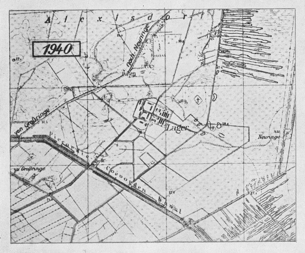In der Mitte der Karte taucht nun aber eine konzentrierte Bebauung auf: das Strafgefangenenlager Alexisdorf.