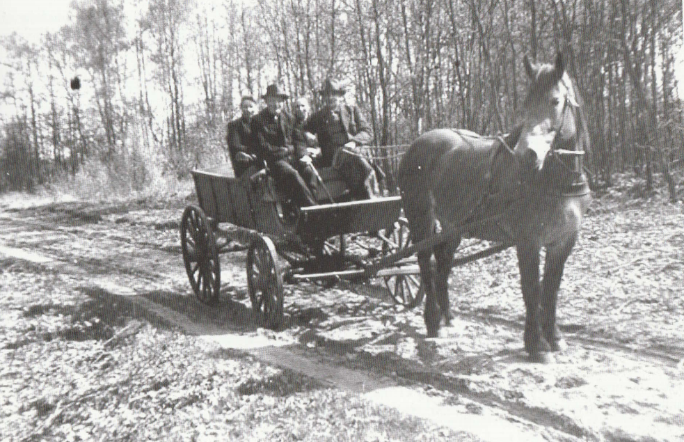 Die Sonntagsausfahrt der „bäuerlichen Herrschaften“ mit dem offenen Sommerwagen. Im Winter wurde die geschlossene Kutsche vorgespannt.