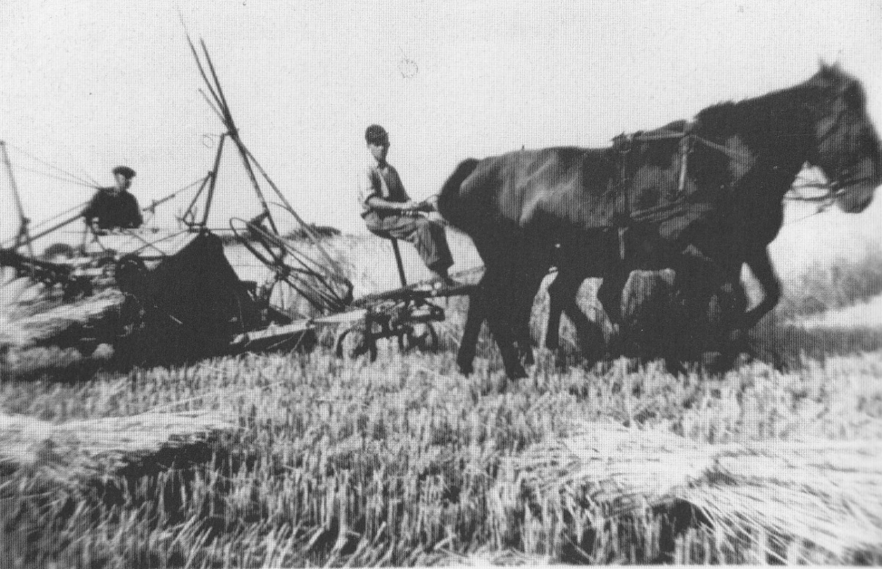 Der Mähbinder war nicht nur schwer zu ziehen, er war auch sehr laut – da mussten die Tiere erst eingewöhnt werden.