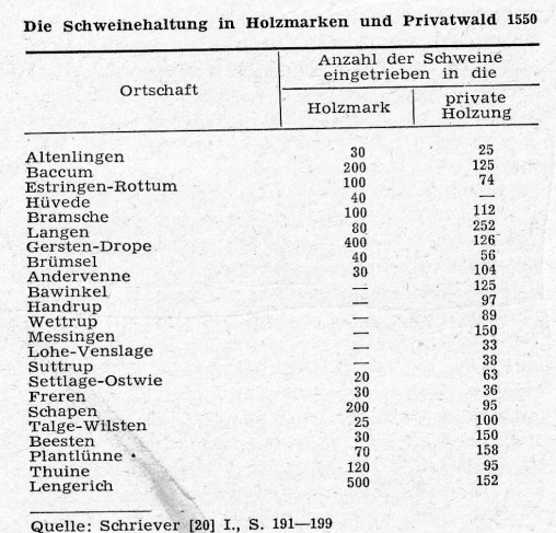 Um eine möglichst große Ausbeute an Eicheln und an Bucheckern zu erhalten, wurde die Krone der Bäume immer wieder ausgeschnitten, um ein noch intensiveres Kronendach zu erhalten. So entstanden knorrige Altbäume, die schließlich wegen der Brennmittelknappheit außerhalb der Moorgebiete in der Feuerstelle landeten.
